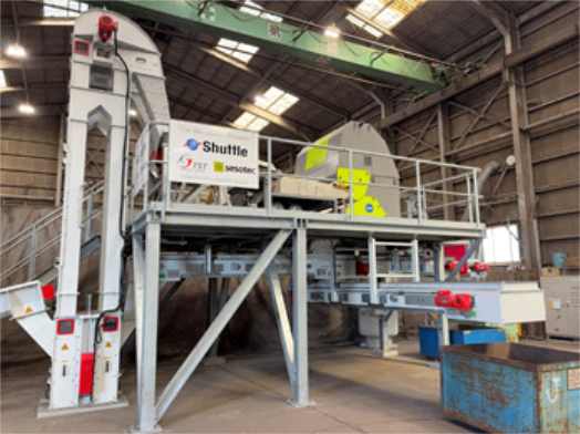西鉄メタル(株)では、環境大臣及び経済産業大臣によりASR※再資源化事業者として認定を受け、2012年10月1日より事業を開始しました。これまで行っていた廃自動車リサイクル事業(破砕業務等)を発展させ、ASRに含まれる樹脂や金属を回収し、製品・再資源化を行っています。ASRから金属類を回収した後のダストはセメント会社で燃料やセメント原料として全量使用されており、取り扱う廃自動車は100%資源循環・エネルギー回収されています。